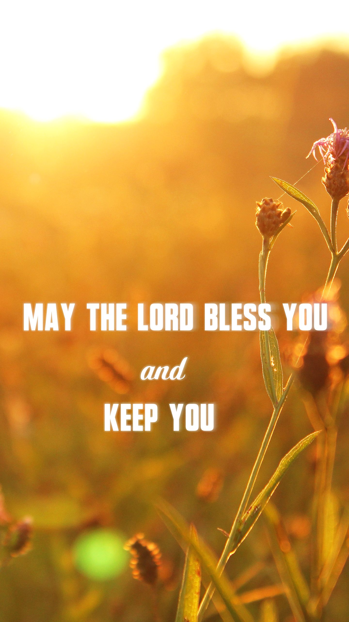 May the Lord Bless you and Keep you might Guard you, bringing a comfort. This visual depicts sunlight over a meadow with pink flowers, representing Blessings and Divine Protection, it inspires Faith. You may download May the Lord Bless you and Keep you image in multiple HD formats for use.