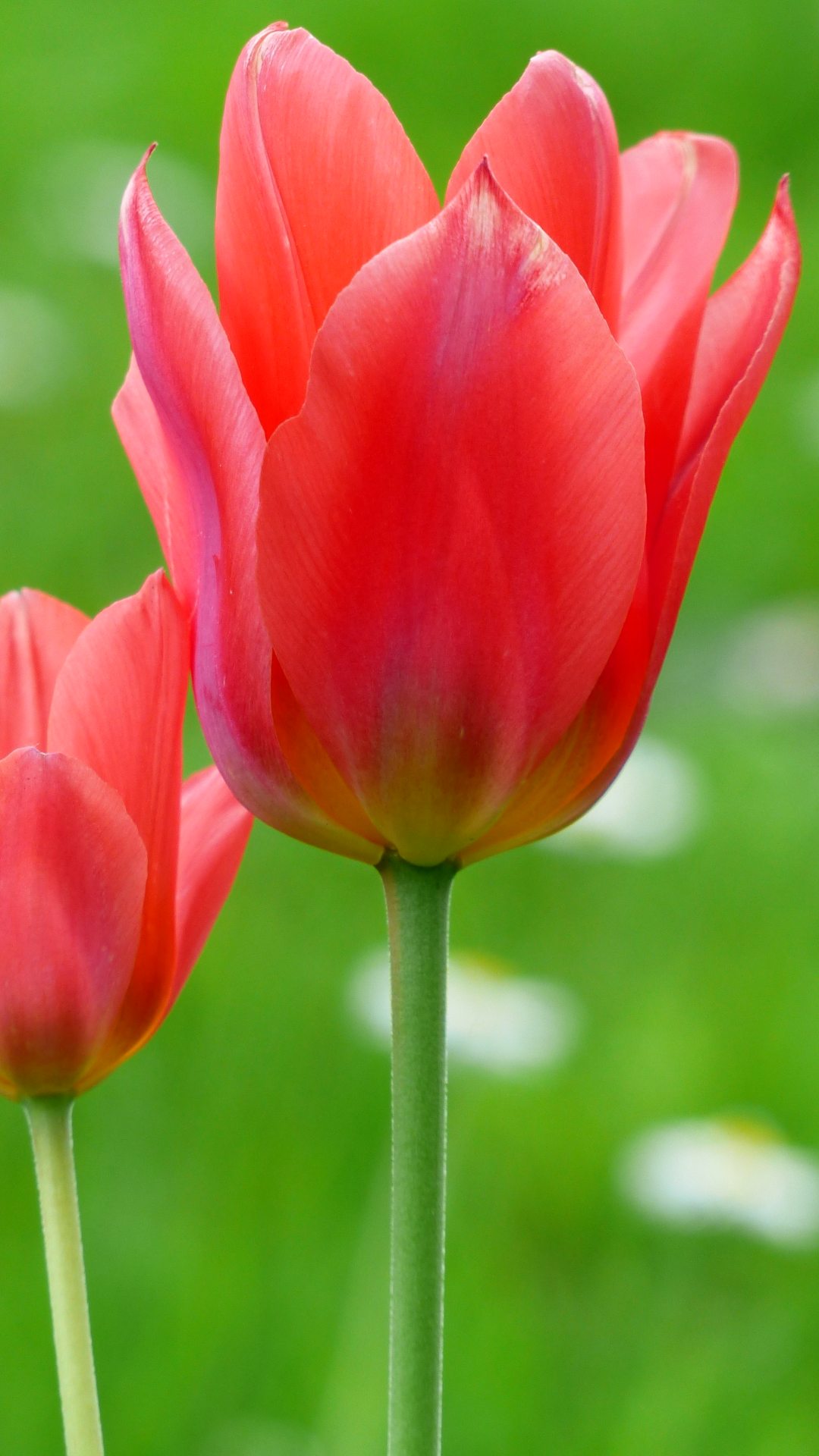 Cute floral wallpaper represents the vivid display, depicting red blossoms and green meadow. The picture brings feelings of joy. You may download this scene in diverse HD resolutions for use. Here is an wonderful and cute floral wallpaper for your device.