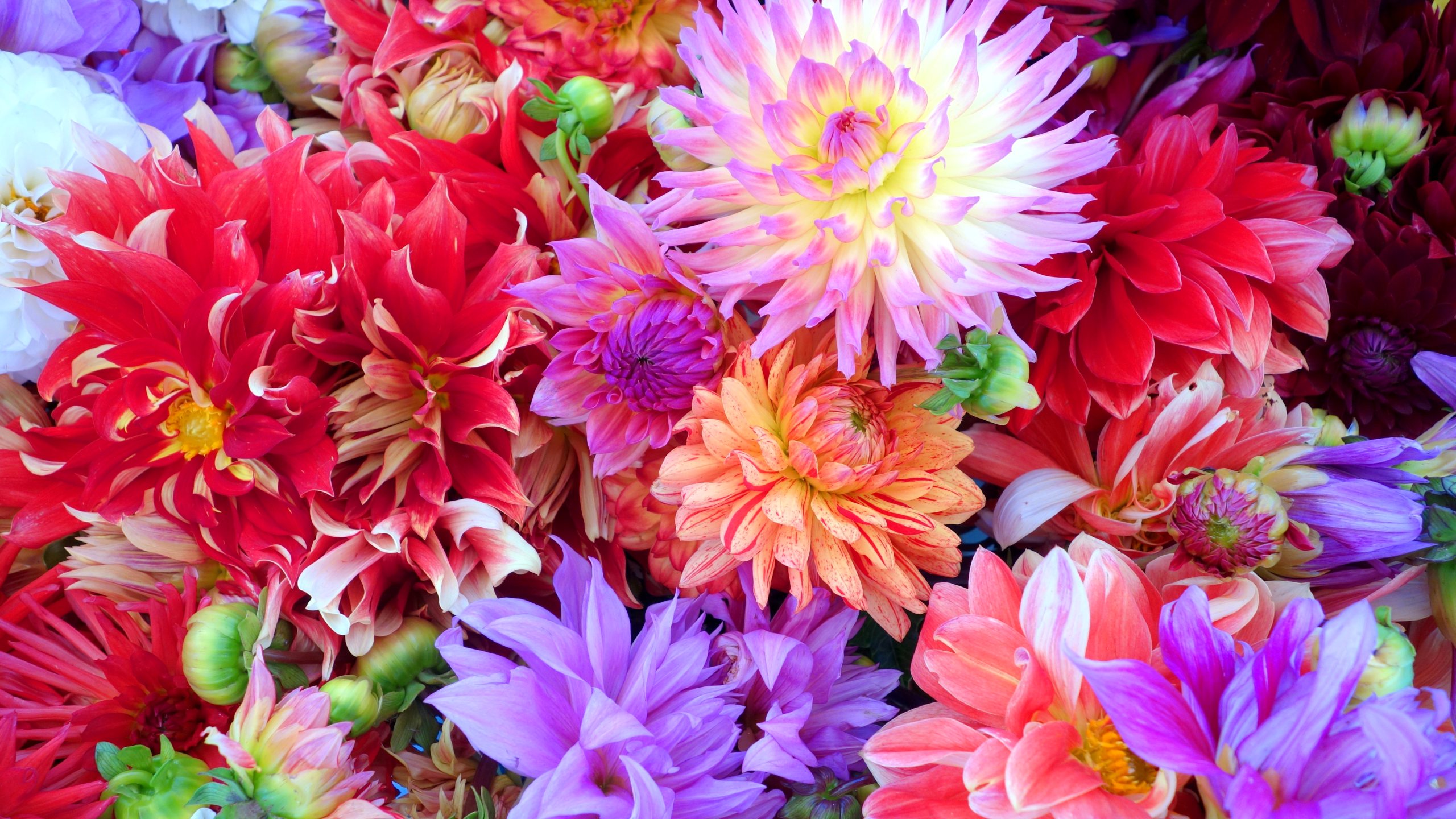Majestic bright wallpaper showing vibrant and multicolored flowers placed together.