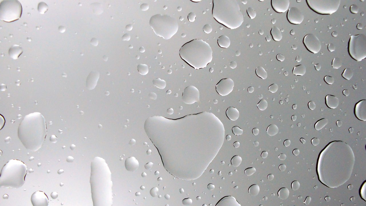 This сalm wallpaper shows drops of the water on the glass with grey background.