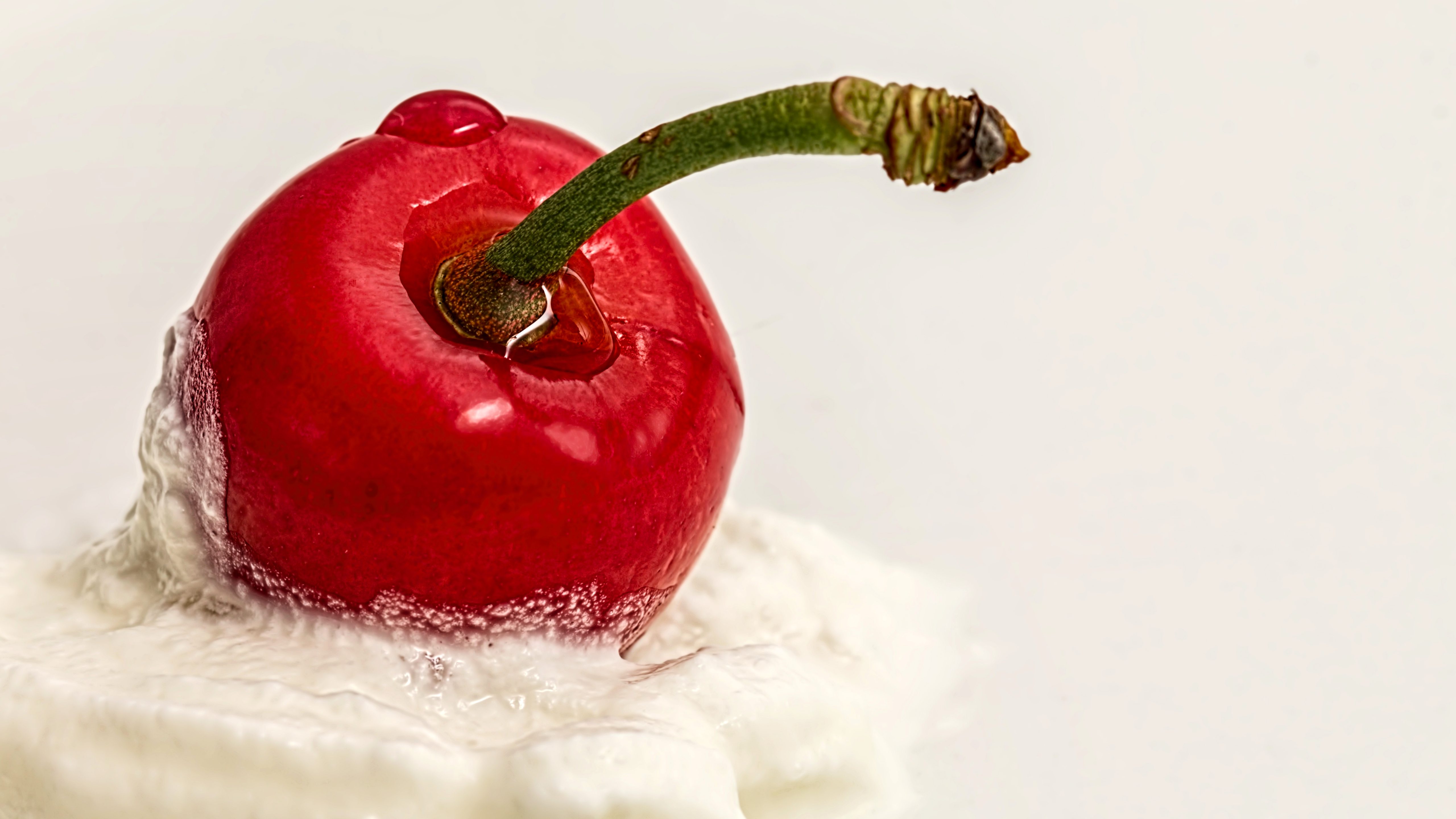 Spectacular nice wallpaper featuring a rich-colored cherry with a light background.