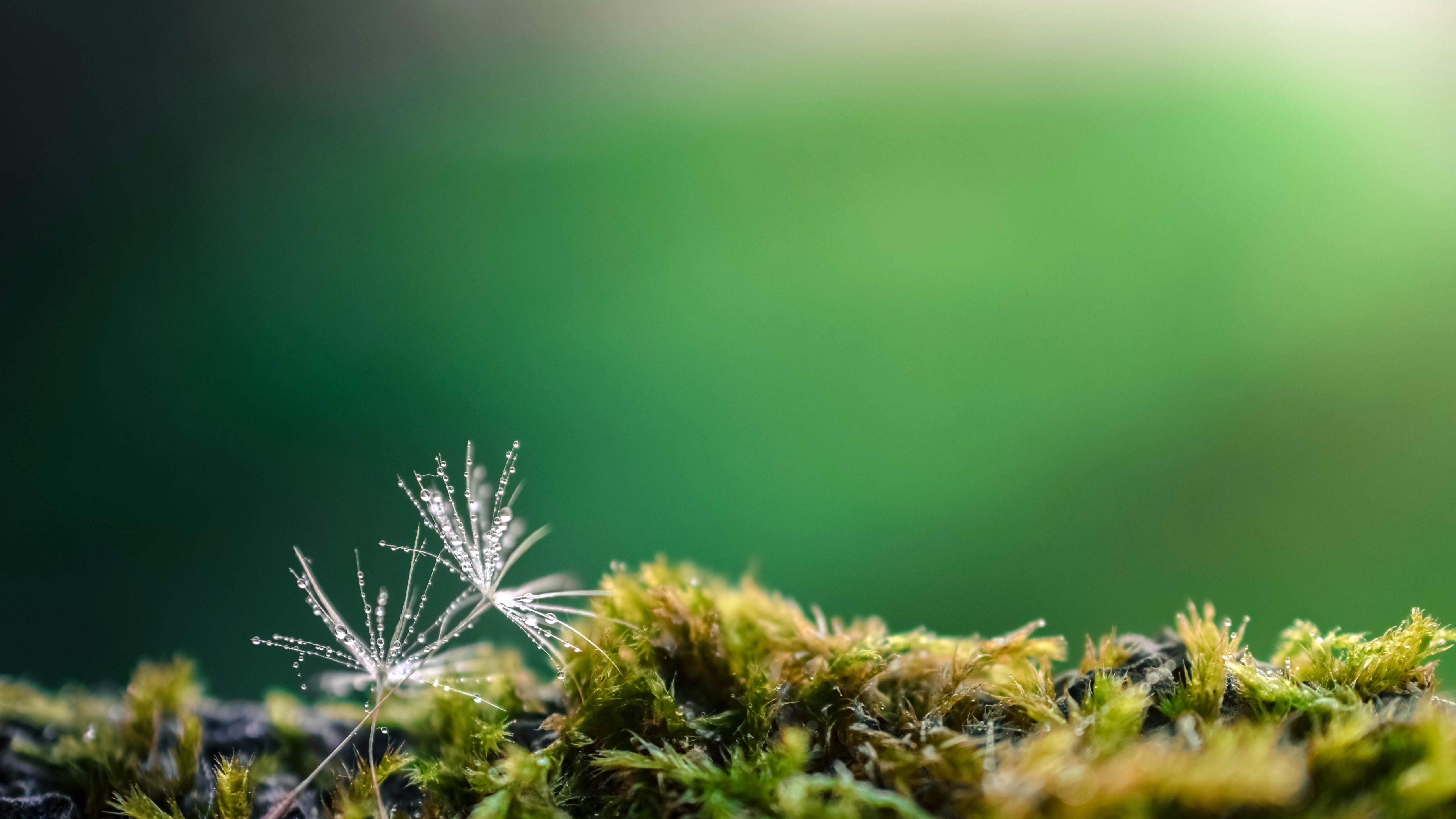 Brilliant relaxing wallpaper showing little plants against the green background.