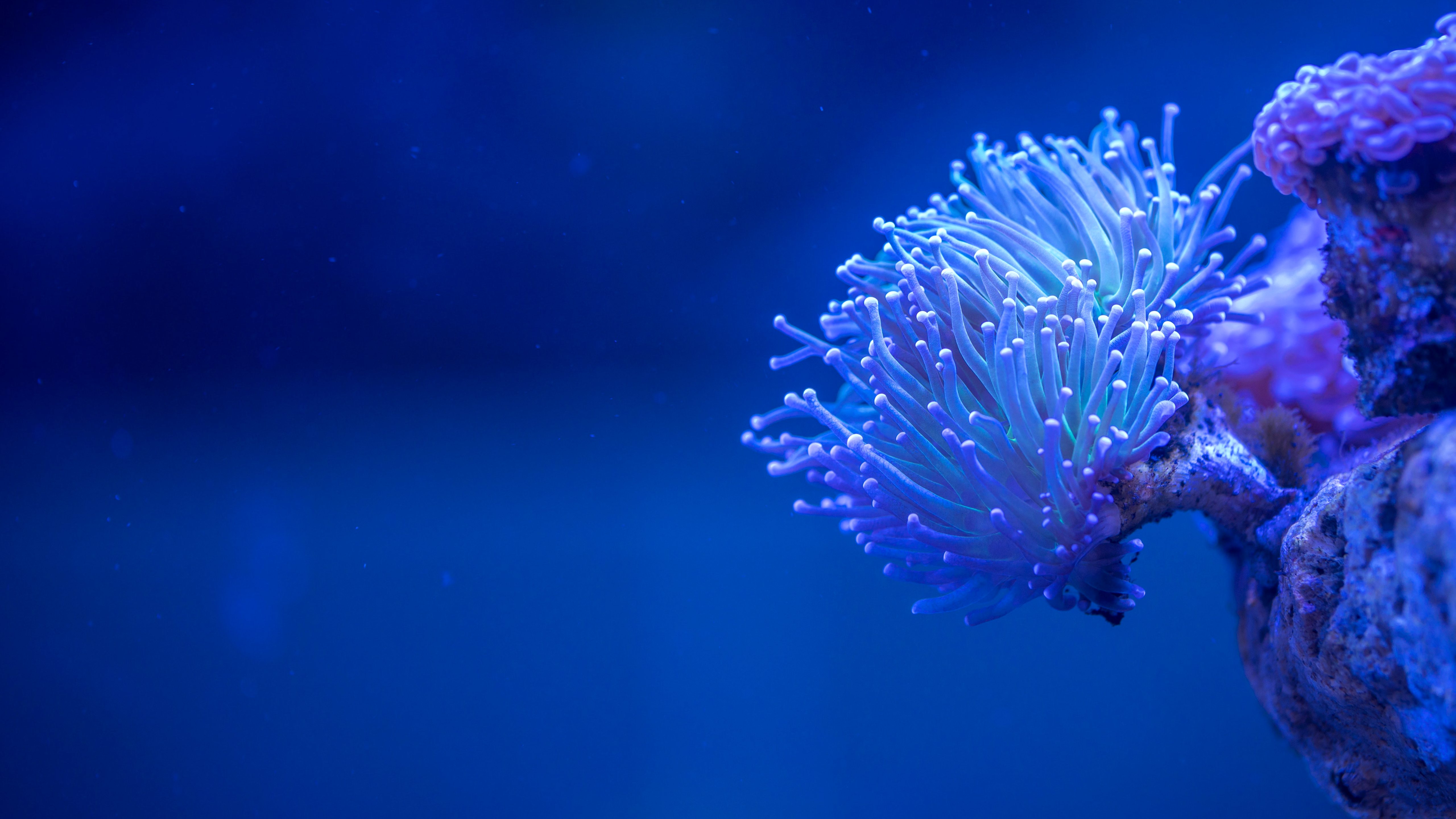 Vivid wallpaper featuring amazing coral reef against the deep colored blue background.