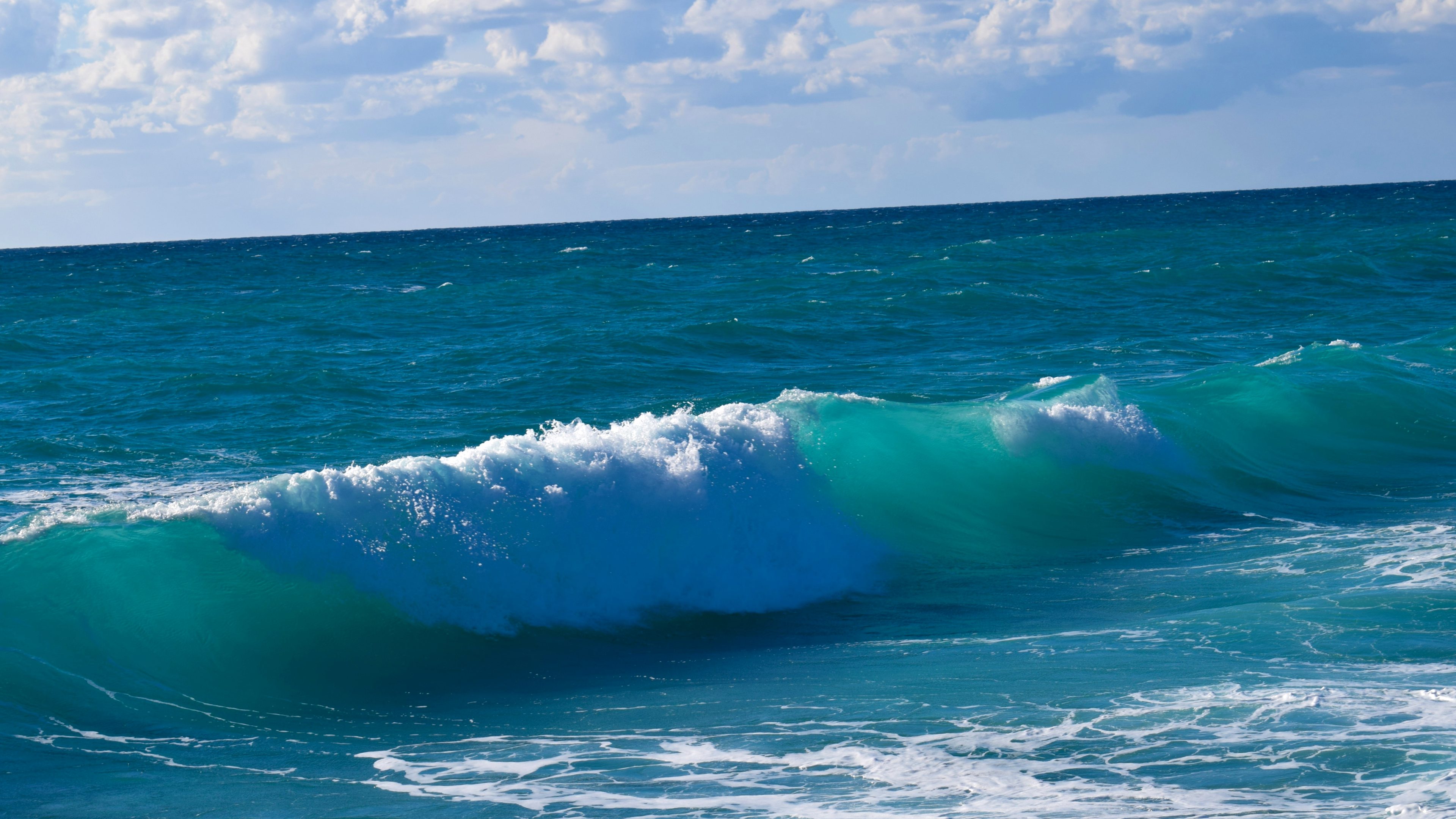 Breathtaking wave wallpaper showing a colorful view with the light-blue sky over the gradient sea water.